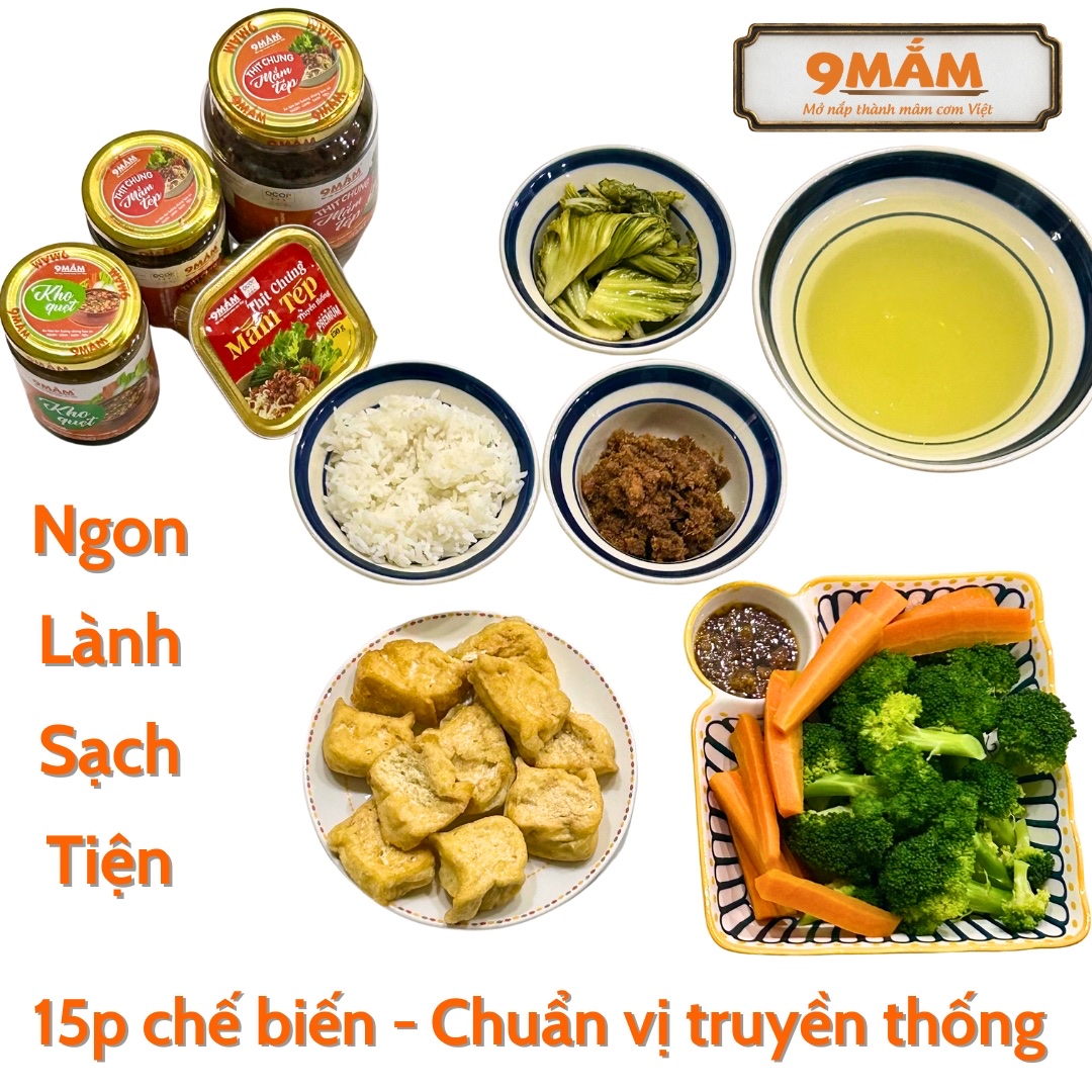 Từ những món ăn dân dã như Thịt chưng mắm tép, Kho quẹt, mỗi sản phẩm của 9MẮM đều được chế biến tỉ mỉ, nấu chậm và nêm nếm đúng vị – để khi mở nắp, bạn không chỉ có một món ăn, mà có thể bắt đầu một mâm cơm ấm cúng cho cả gia đình.